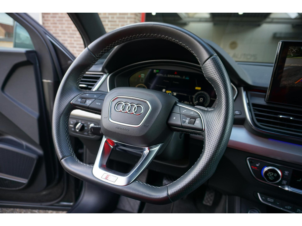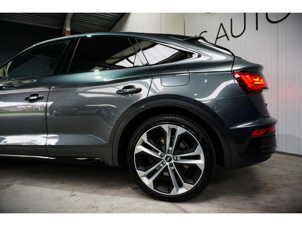 Overcomplete en uiterst sportieve Audi Q5 55TFSIe Sportback S-Line met black pakket! De auto verkeerd in een uitmuntende staat en is natuurlijk volledig Audi Dealer onderhouden en afkomstig van de 1e eigenaar! Daytona Grijs met black pakket, en 21" Audi Sport velgen!