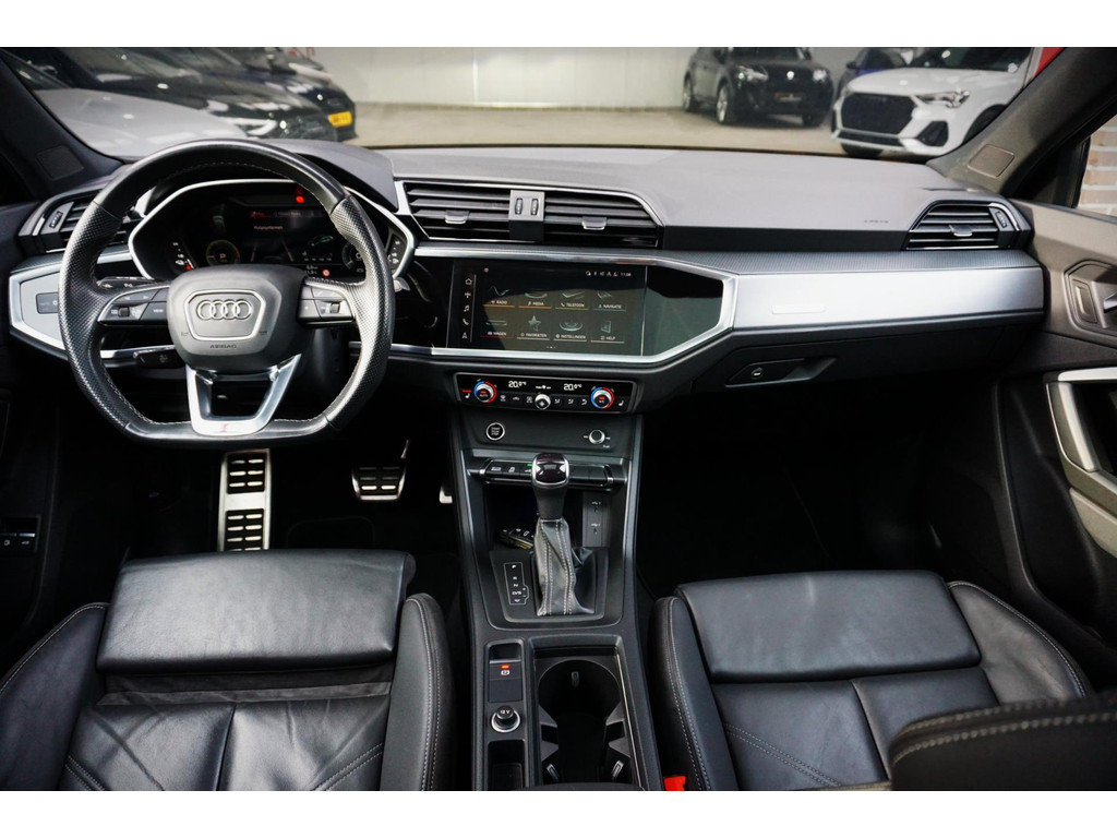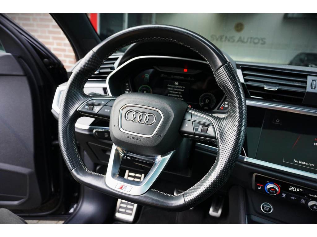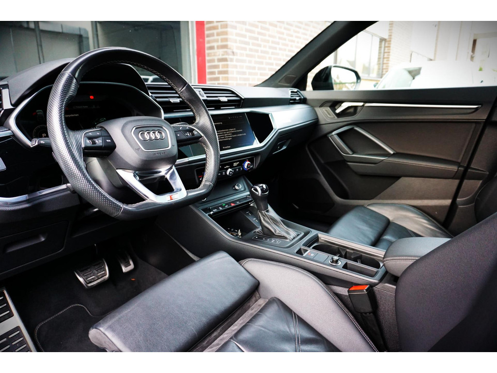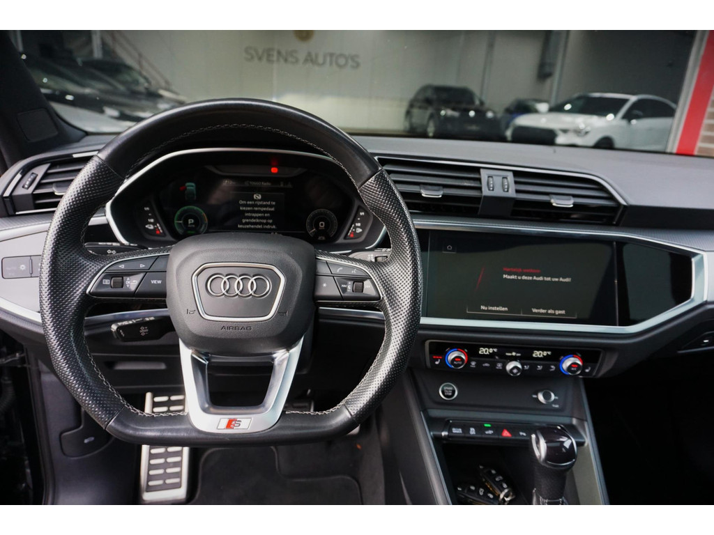 Luxe, volledig Audi Dealer Onderhouden en vooral in nieuwstaat verkerende Audi Q3 45TFSIe Plug in Hybride met 245pk! Volledig Audi Dealer onderhouden, afkomstig van de 1e eigenaar! S-Line, en voorzien van black pakket, 19" Audi Sport velgen, en de kleur Mythoss Zwart Metallic.
