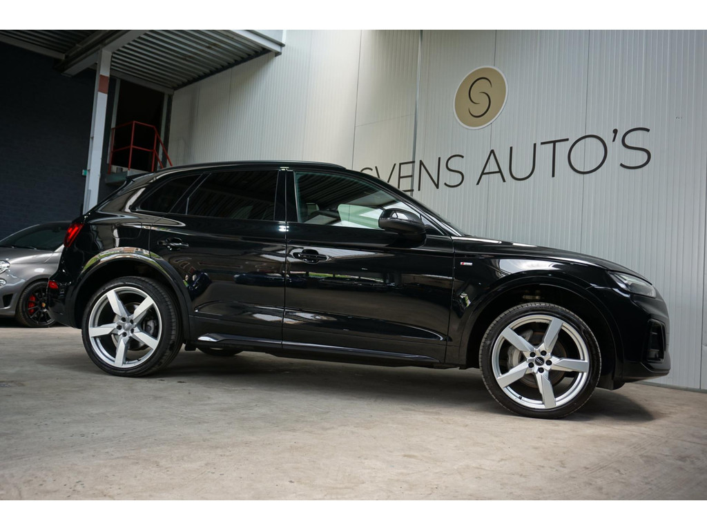 Overcomplete en uiterst sportieve Audi Q5 55TFSIe S-Line! De auto verkeerd in een uitmuntende staat en is natuurlijk volledig Audi Dealer onderhouden en afkomstig van de 1e eigenaar! Volledig zwart met black pakket, en 21" Audi Sport velgen!
