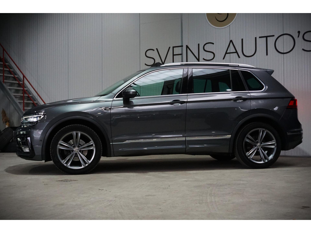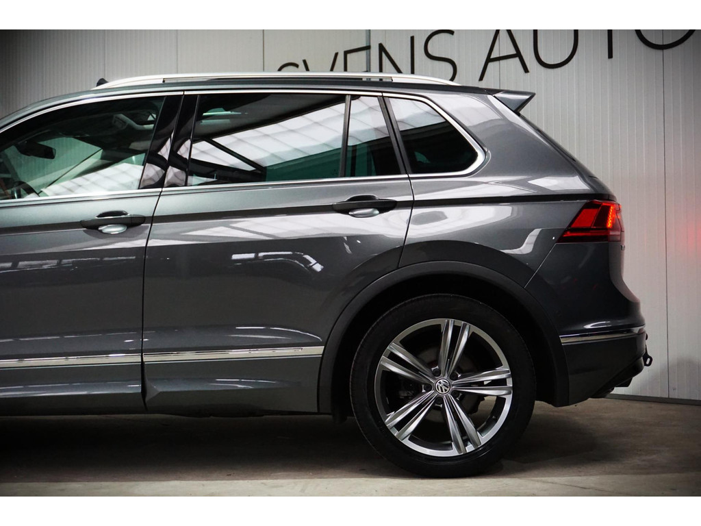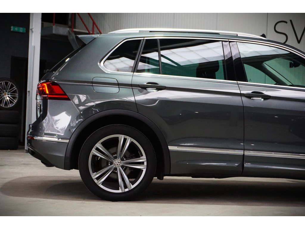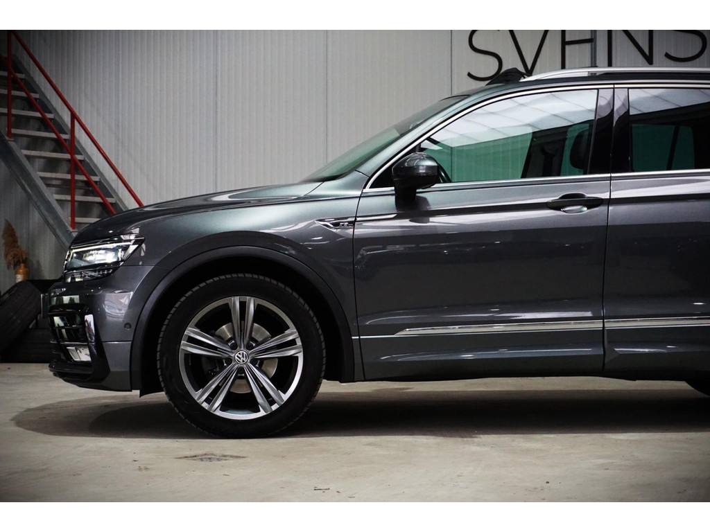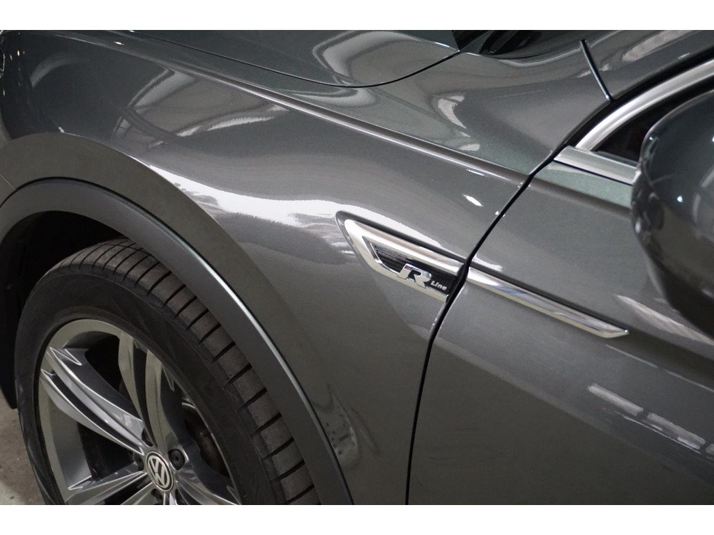 Zeer luxe Volkswagen Tiguan R-Line in de kleur Indium Grey Metallic met 19" R-Line velgen.