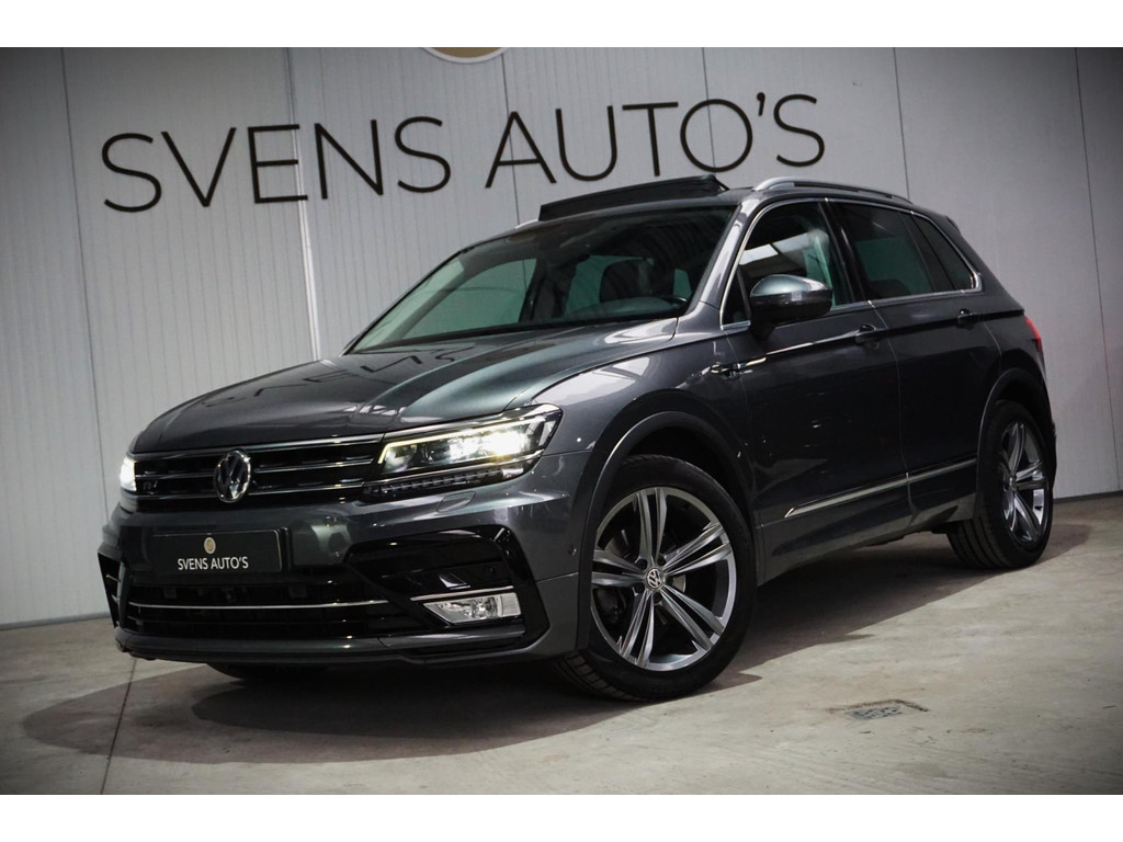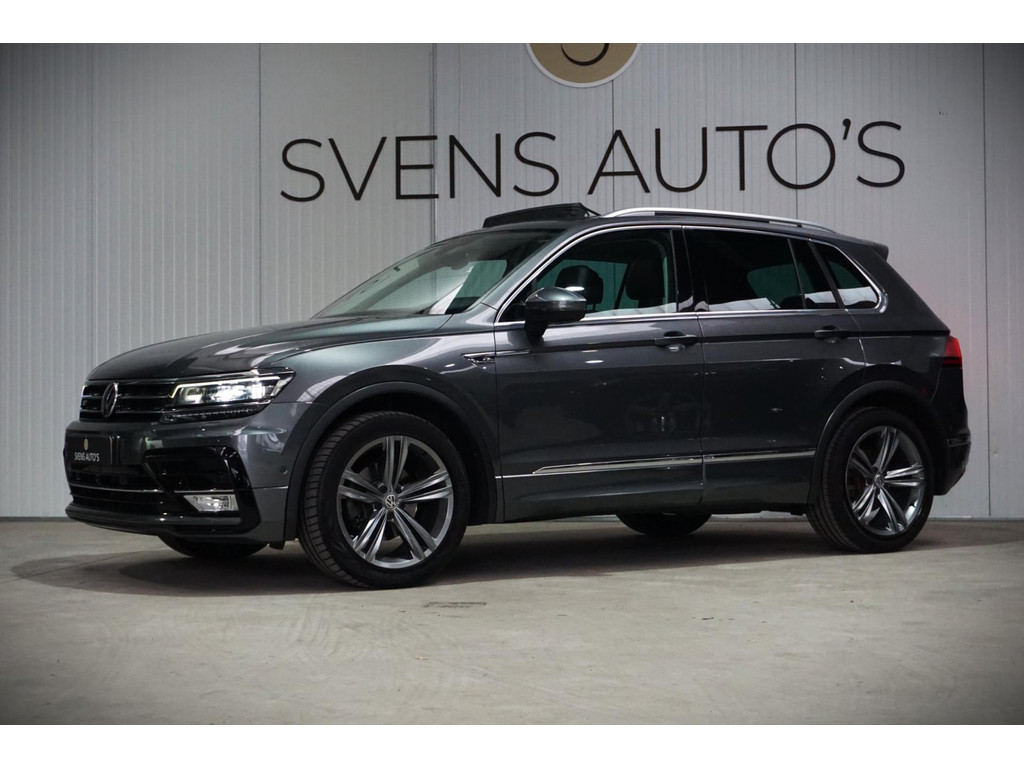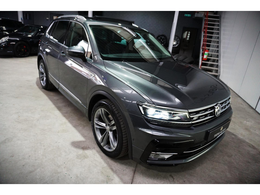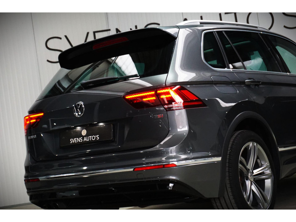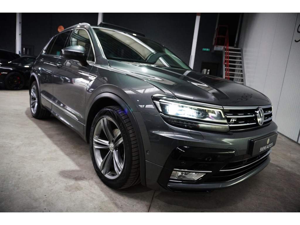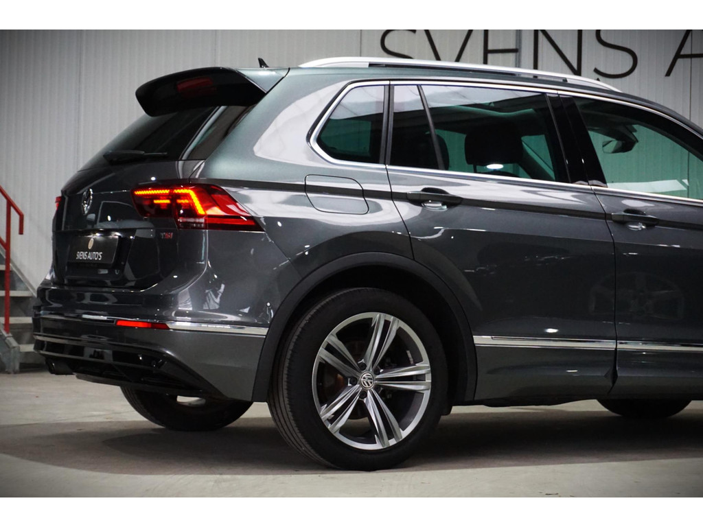 Zeer luxe Volkswagen Tiguan R-Line in de kleur Indium Grey Metallic met 19" R-Line velgen.