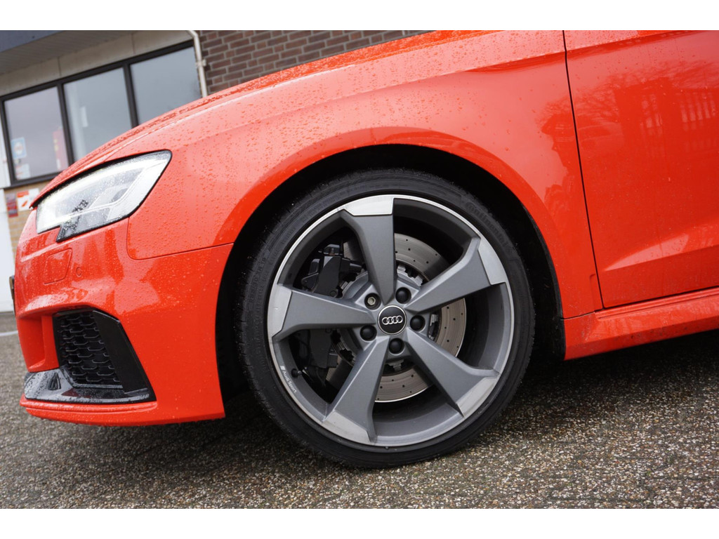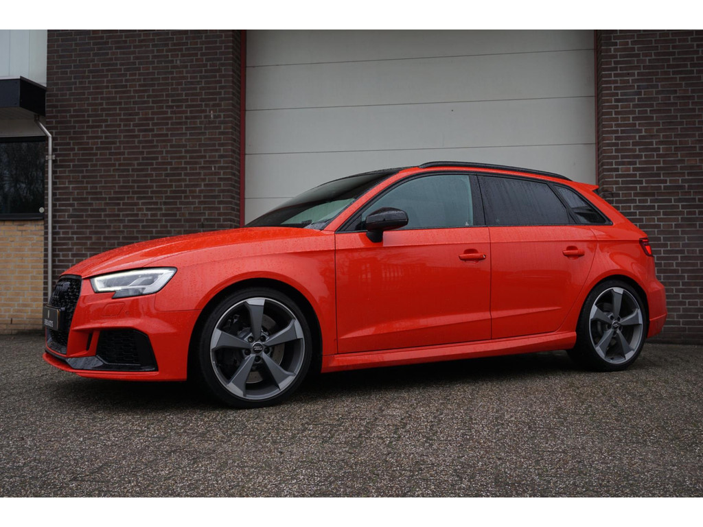 Overcomplete en uiterst sportieve Audi RS3 Sportback! De auto verkeerd in een uitmuntende staat en is netjes onderhouden en bijgehouden! Zeer dikke verschijning in de kleur Catalunya-rood metallic, en het black pakket!