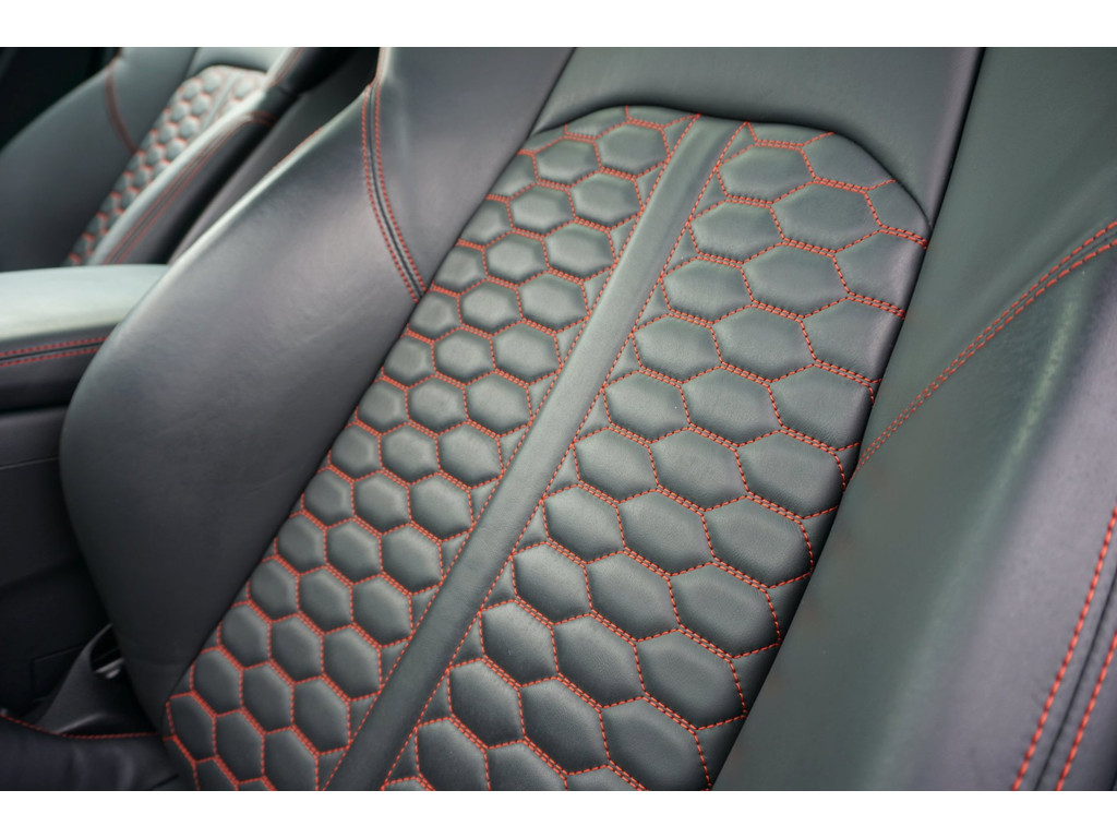 - Stoelbekleding/kussens: Leer Fijne nappa, Honingraat patroon met RS Logo in Voorstoelleuningen